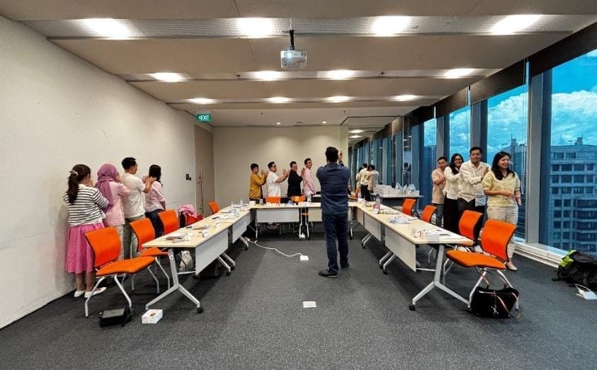Permainan sederhana tapi bermakna ini mampu mencairkan suasana, mengembalikan fokus, dan mempererat hubungan antar peserta. Tak ada yang malu, tak ada yang menahan tawa, semua menikmati momen kebersamaan yang hangat.
